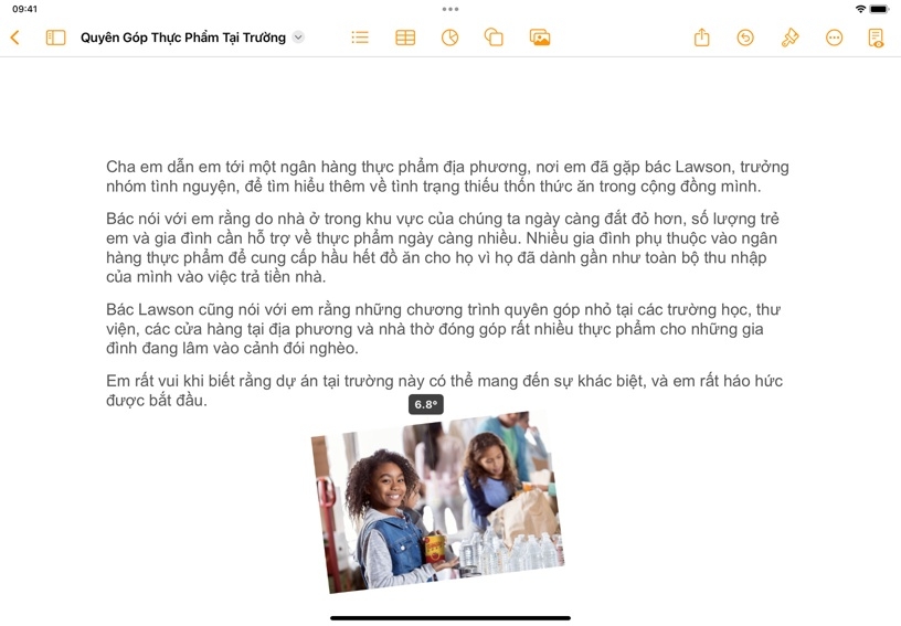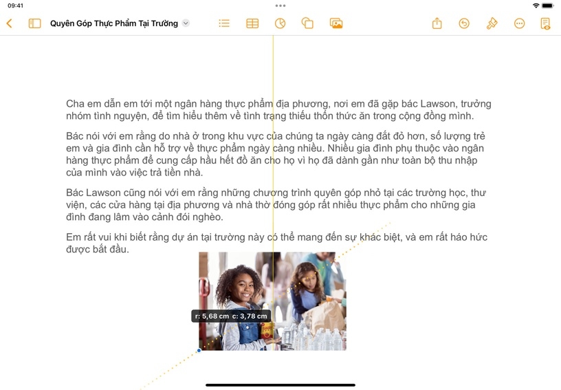 Đặt lại vị trí. Chạm và kéo bức ảnh để di chuyển. Văn bản sẽ tự động ngắt dòng quanh bức ảnh trong tài liệu soạn thảo văn bản.