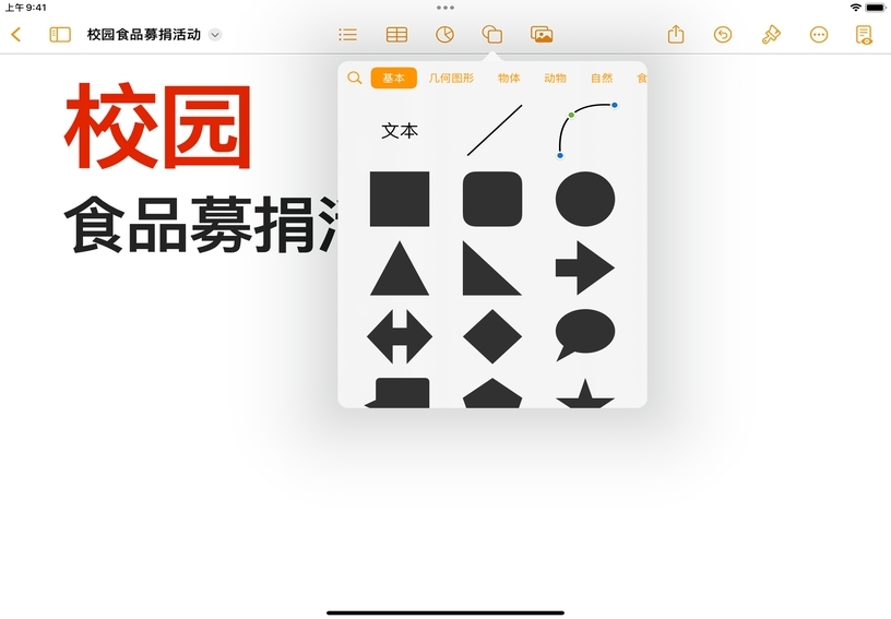,以搜索特定形状。轻点形状,将其添加到页面中。