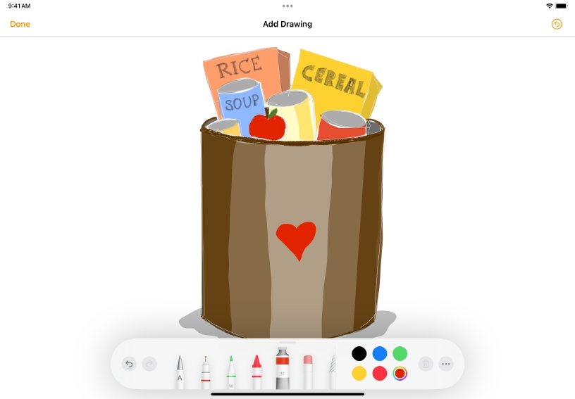 Built-in tools let you add sketches, doodles, and handwritten text using Apple Pencil or your finger. Personalize documents with drawings or create sketchnotes, comics, and artful journals.