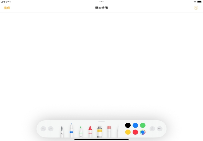 更改颜色。轻点其中一个预设色点以切换当前所选工具的颜色;或者轻点色轮,从调色板中选取一种自定颜色。