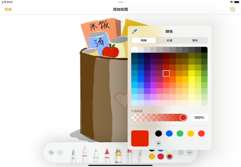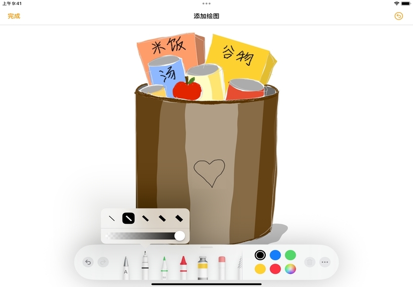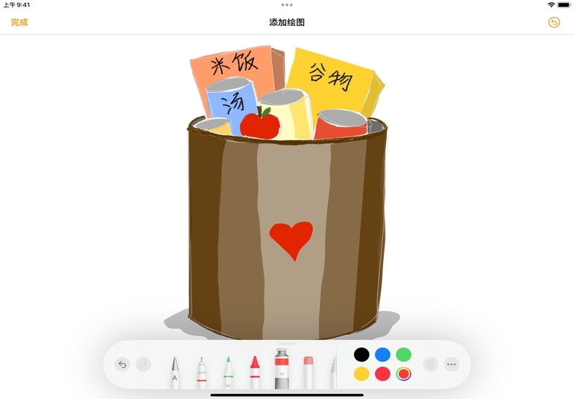 借助各种内置工具,你可以使用 Apple Pencil 或手指添加草图、涂鸦和手写文本。利用绘图为文稿增添个性化元素,或者创建素描笔记、漫画以及富有艺术感的日记。