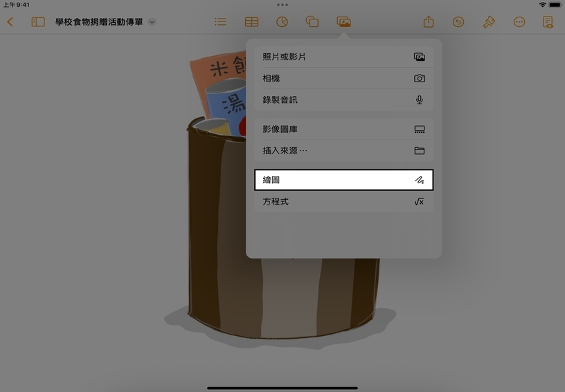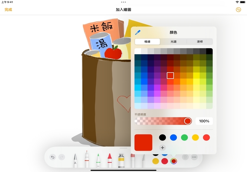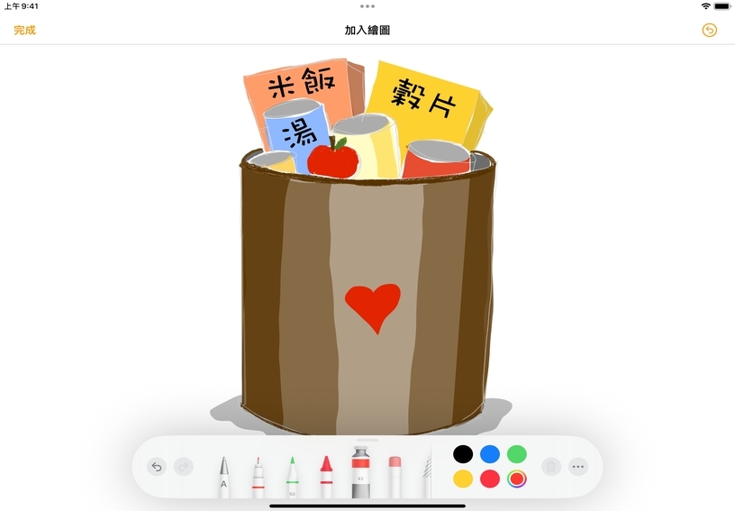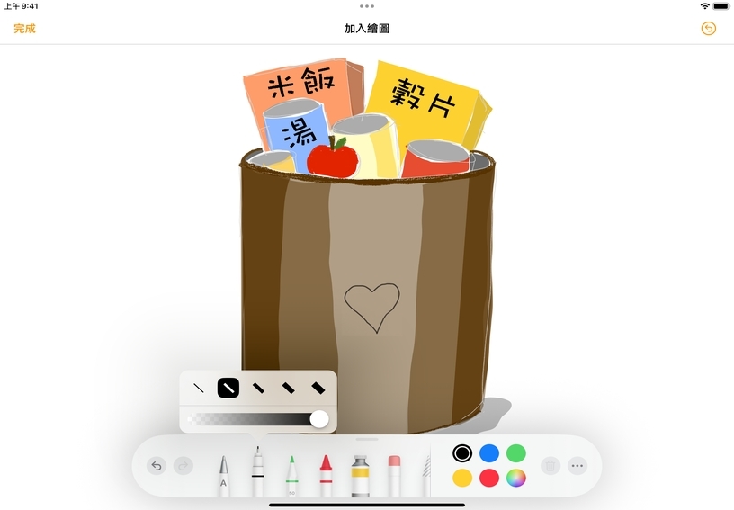 內建工具讓你可以使用 Apple Pencil 或手指來加入素描、塗鴉和手寫文字。利用繪圖來呈現個人化的文件,或製作速寫筆記、漫畫和藝術日誌。