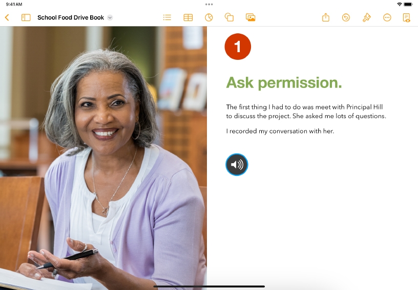 You can enrich your documents with audio you’ve created in apps like GarageBand. Add a soundtrack to a story, a beat track to a poetry document, or international music to a foreign language lesson.