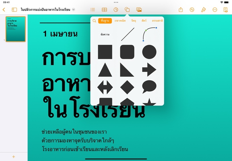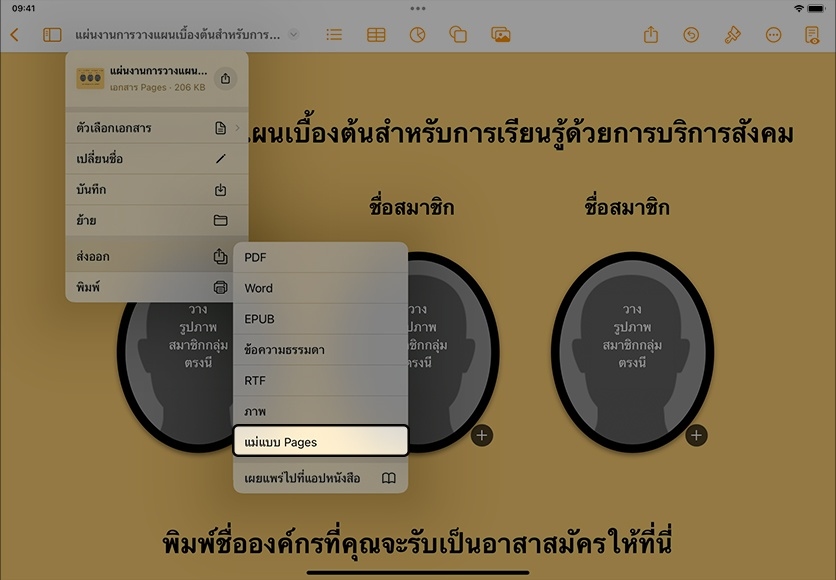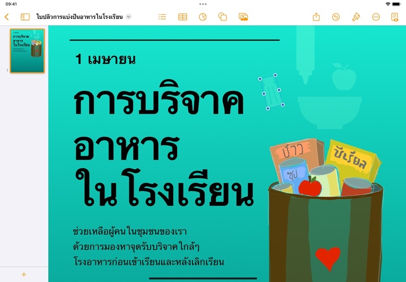 คุณสามารถใช้ Pages เป็นผืนผ้าใบว่างเปล่าเพื่อออกแบบเค้าโครงหน้าของตัวเองตั้งแต่เริ่มต้น และด้วยความอิสระในการจัดวางองค์ประกอบไว้ที่ใดก็ได้ คุณจึงสามารถสร้างโปสเตอร์หรือใบปลิวที่ไม่ซ้ำแบบใครสำหรับงานกิจกรรมที่กำลังจะจัดขึ้น สร้างผังกราฟิกให้นักเรียน หรือออกแบบแม่แบบที่กำหนดเองเพื่อใช้เป็นแบบเรียนได้ตามต้องการ