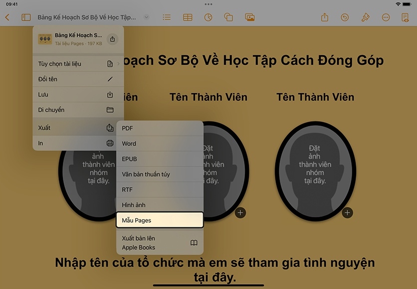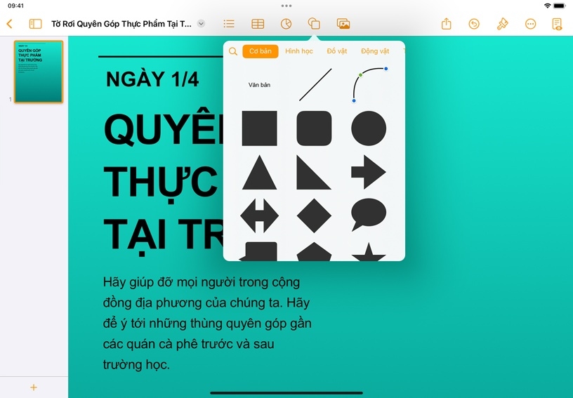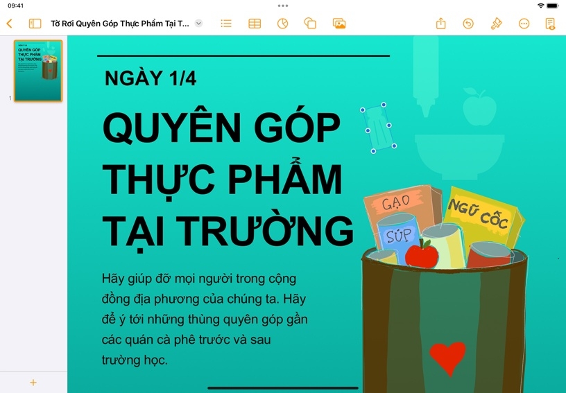 Bạn có thể dùng ứng dụng Pages làm nền trống để thiết kế bố cục trang ngay từ đầu. Bạn tự do bố trí các thành phần vào bất cứ vị trí nào bạn muốn để tạo mẫu áp phích hoặc tờ rơi độc nhất vô nhị cho sự kiện sắp tới, làm bản đồ kiến thức cho học sinh, hoặc thiết kế riêng một mẫu sách dùng trong lớp học.