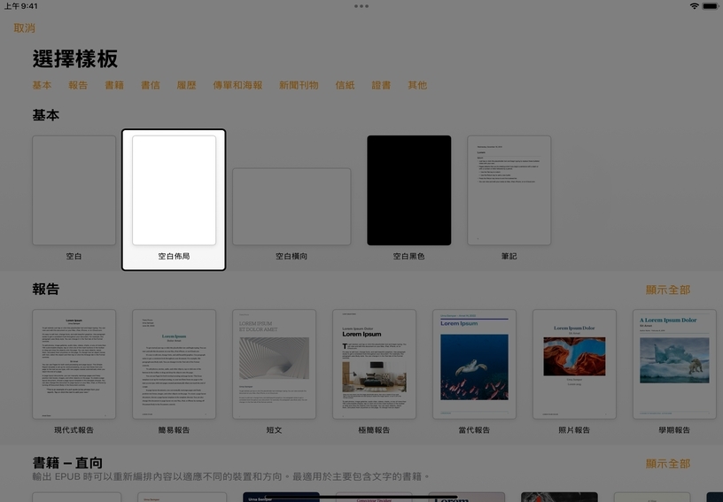 選取「基本」類別中的「空白佈局」。