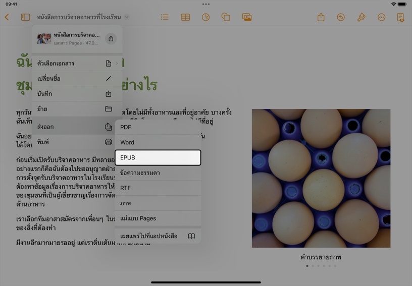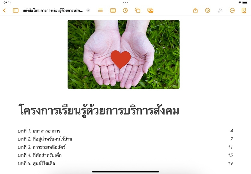 คุณสามารถสร้างหนังสือแบบอินเทอร์แอ็คทีฟที่มีแกลเลอรี่รูปภาพ วิดีโอ เสียง และอีกมากมายโดยใช้แม่แบบหนังสือที่มีให้เลือกหลากหลายแบบใน Pages นอกจากนี้ยังสามารถแชร์หนังสือของคุณกับผู้อื่นเพื่อเพิ่มไปยังคลัง Apple Books ของพวกเขา ทำให้พวกเขาเก็บหนังสือนั้นไว้ใช้เป็นข้อมูลอ้างอิงได้ด้วย