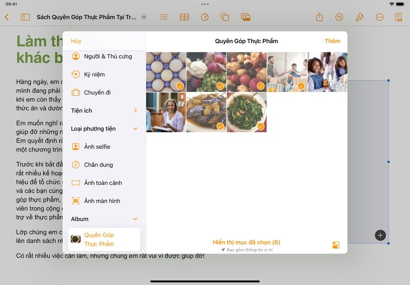ở góc dưới bên phải của bộ sưu tập hình ảnh, chạm vào Chọn Ảnh, chọn hình ảnh trong trình duyệt ảnh, sau đó chạm vào Thêm.