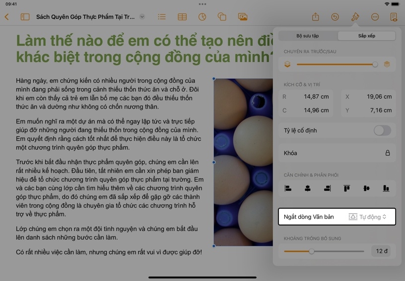 Ngắt dòng văn bản xung quanh thư viện ảnh. Chạm để chọn thư viện ảnh. Chạm vào Định Dạng