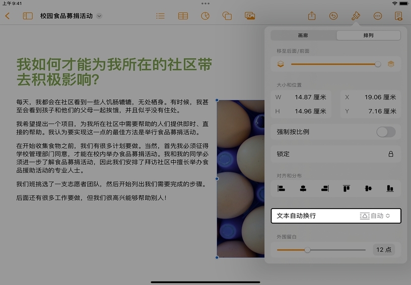 ,切换到“排列”标签页,再轻点“文本绕排”。接着选取一种文本绕排样式。