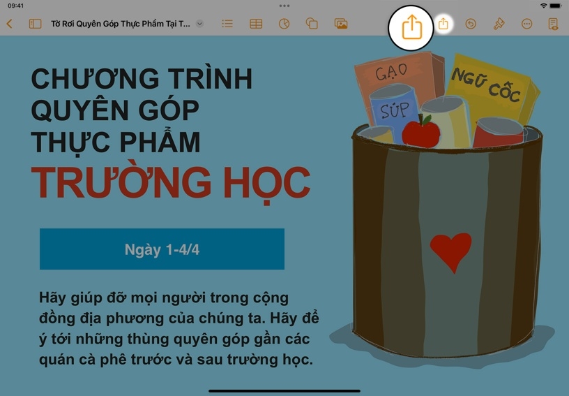 trên thanh công cụ. Bạn phải bật iCloud trên iPad mới có thể mời những người khác cộng tác.