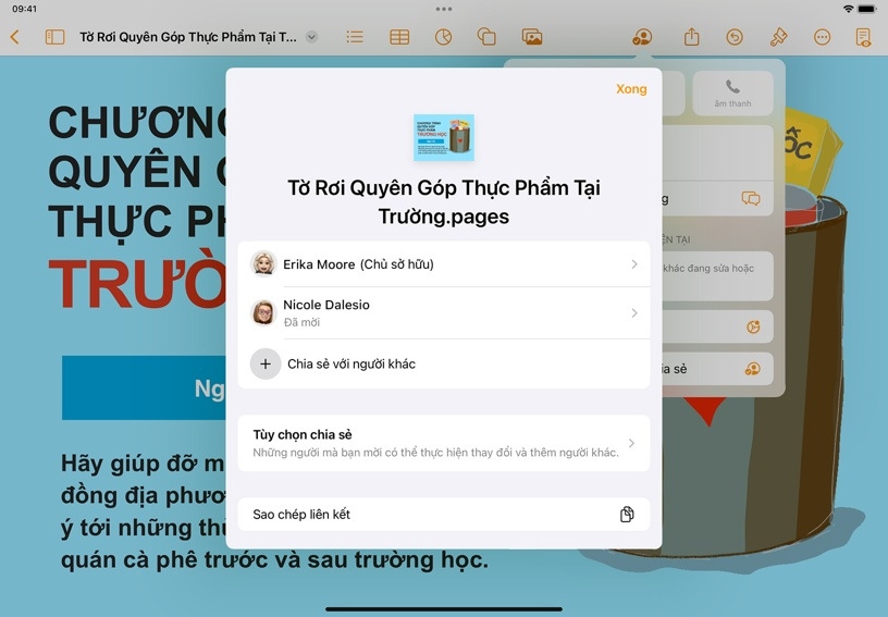 Mời những người khác cùng cộng tác. Chạm vào Chia Sẻ