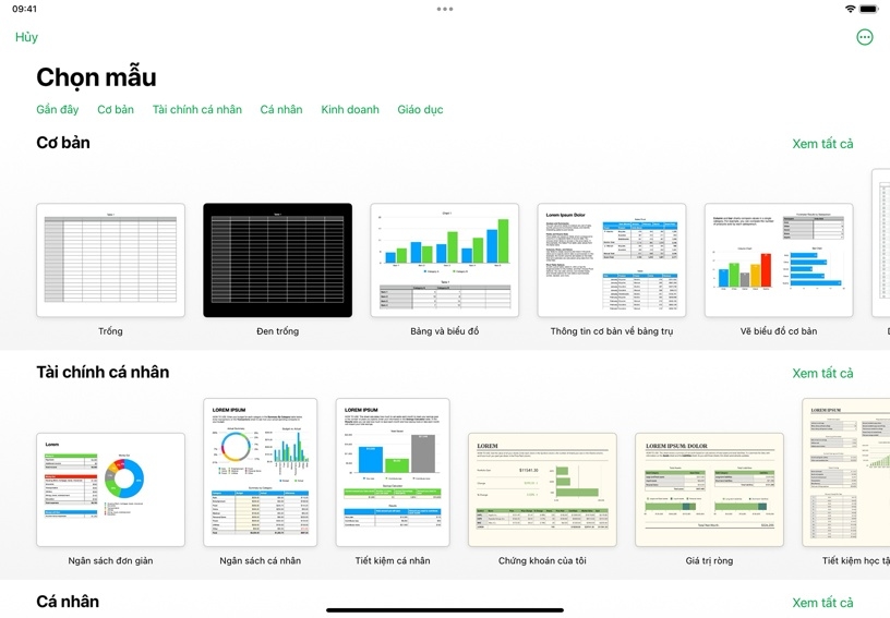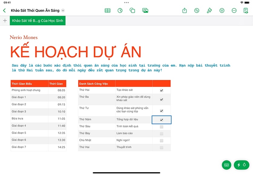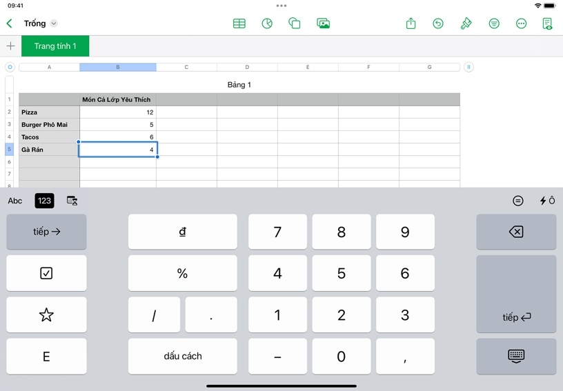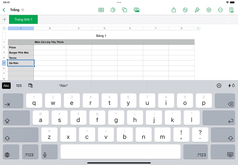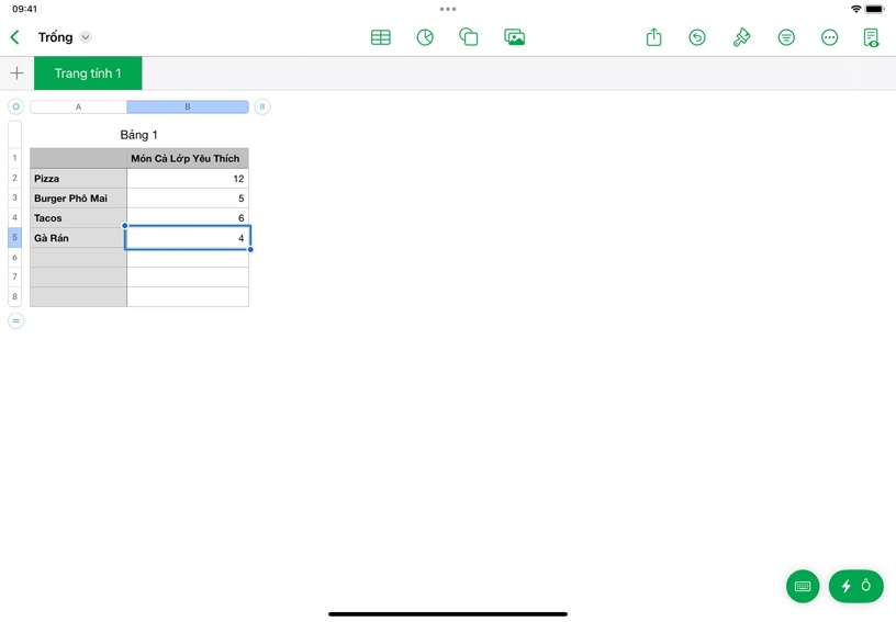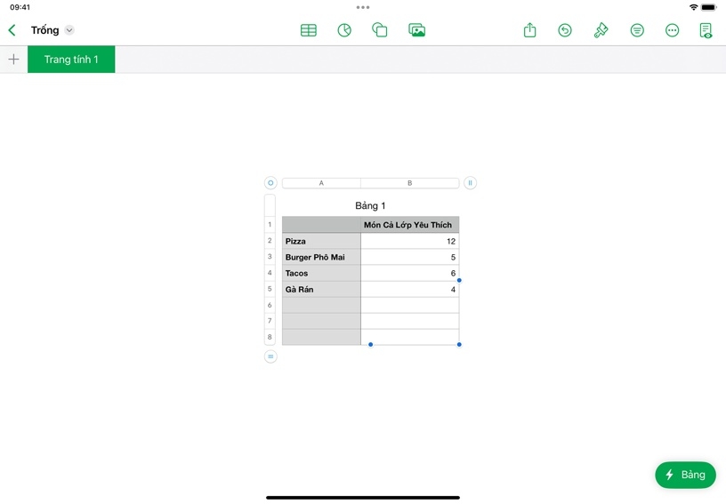 Mỗi bảng tính bắt đầu bằng một bảng, nơi bạn có thể sắp xếp các con số, từ ngữ và các loại thông tin khác theo hàng và cột. Bạn có thể dùng bảng biểu để ghi lại kết quả thí nghiệm, liệt kê nét tiêu biểu của nhân vật trong văn học, ghi lại ý tưởng thảo luận, v.v.