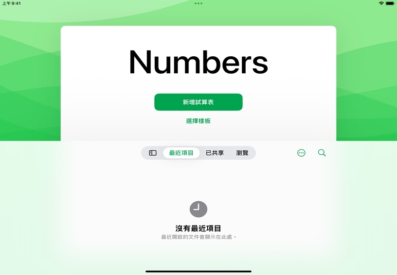 在試算表管理程式中,點一下畫面頂端的「選擇樣板」,即可打開樣板選擇器。