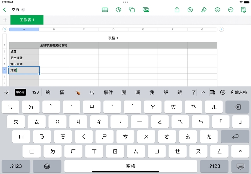 在輸入格中加入文字。點一下並選取輸入格,然後點一下畫面底部的「鍵盤」