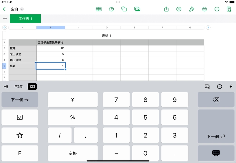 顯示數字鍵盤,即可在輸入格中輸入數字。完成時,點一下「隱藏鍵盤」