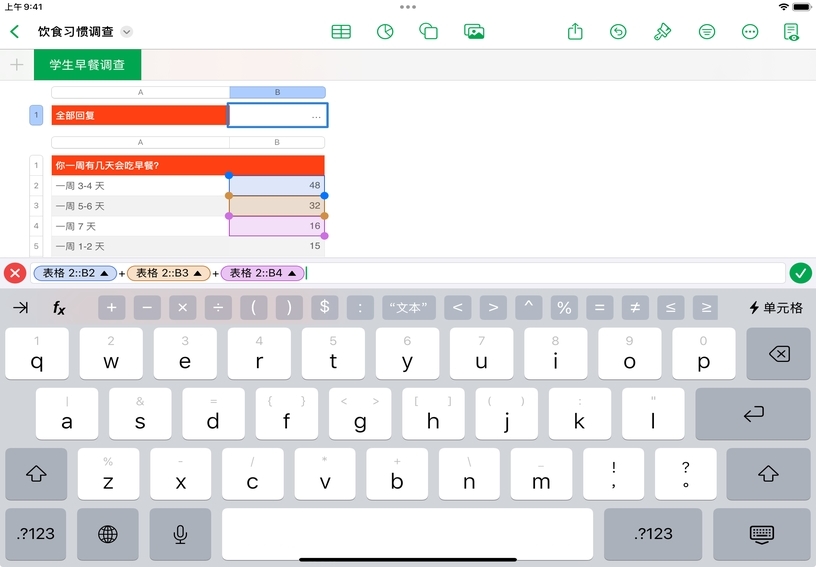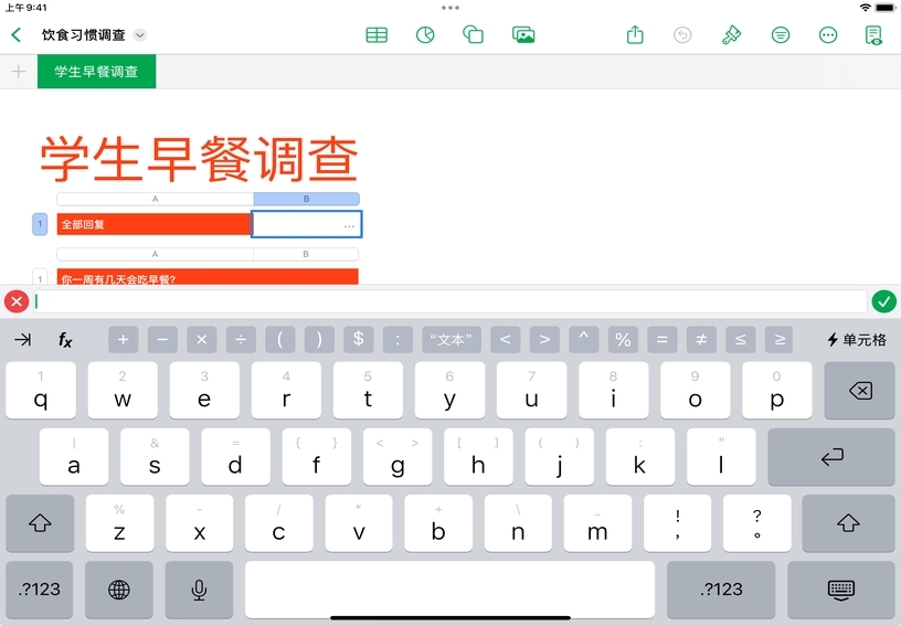 打开公式键盘。轻点你想要应用公式的单元格,轻点“键盘”