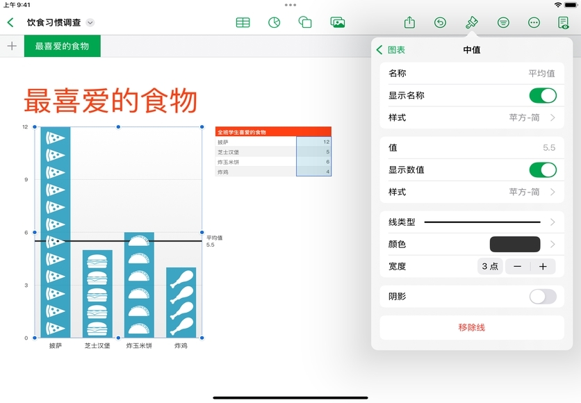 在图表上显示各数据点的值。轻点“格式”