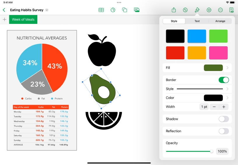 Customize a shape’s appearance. Tap Format , tap the Style tab, then choose a new fill colour, add a border, adjust the opacity, and more.