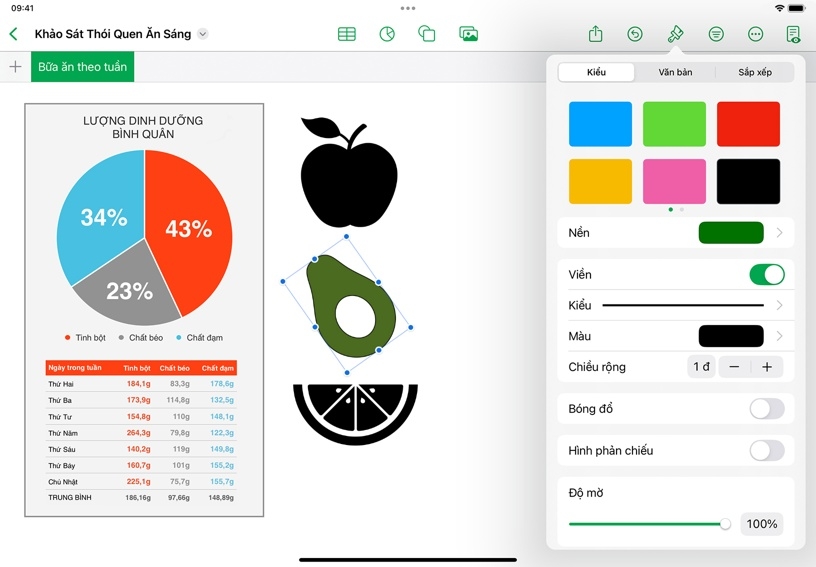 , chạm vào tab Kiểu, sau đó chọn màu nền mới, thêm đường viền, điều chỉnh độ mờ, v.v..
