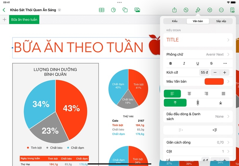 , sau đó chạm vào tab Văn Bản để thay đổi phông chữ, màu, kiểu, căn chỉnh cùng các tùy chọn khác.