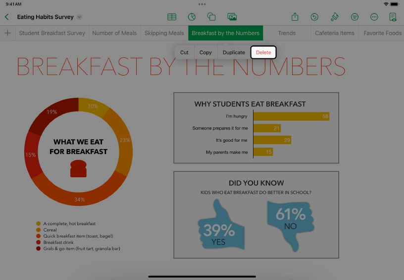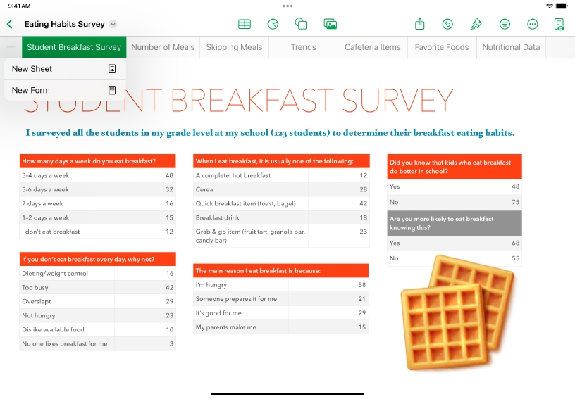 You can add multiple sheets (or tabs) to a spreadsheet to help organize your information. Consider splitting a project into sheets, such as one for tracking tasks, another for data, and a summary sheet for presenting results.