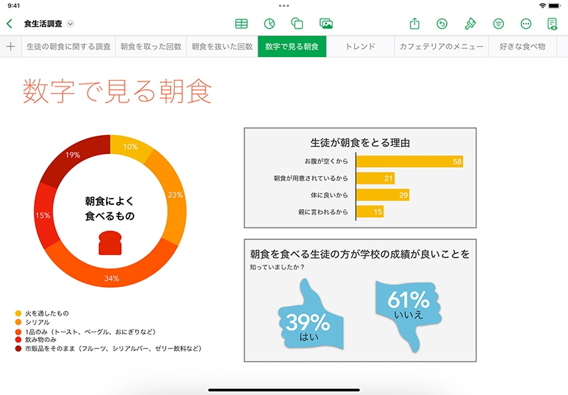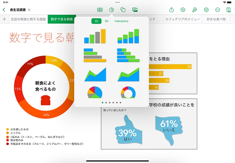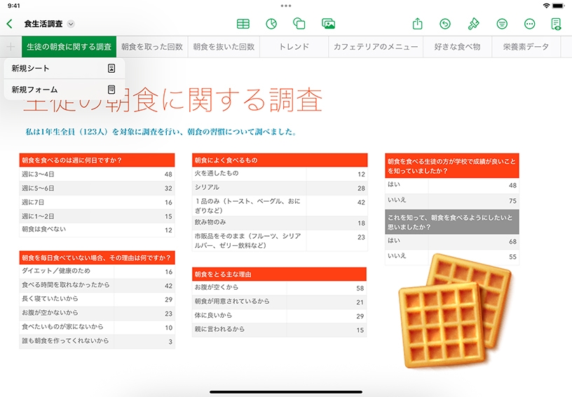 担当しているクラスごとに情報を整理してみましょう。教科や学習段階ごとに新しいシートを作成し、表やグラフ、その他のオブジェクトを追加すると、データ、タスク、リソースの並べ替えや管理が簡単になります。