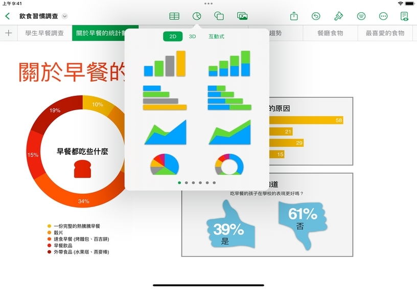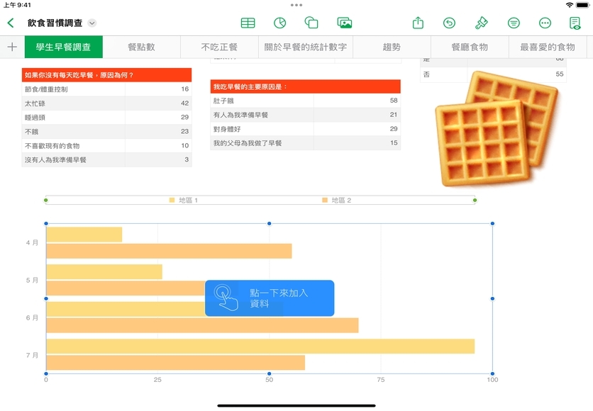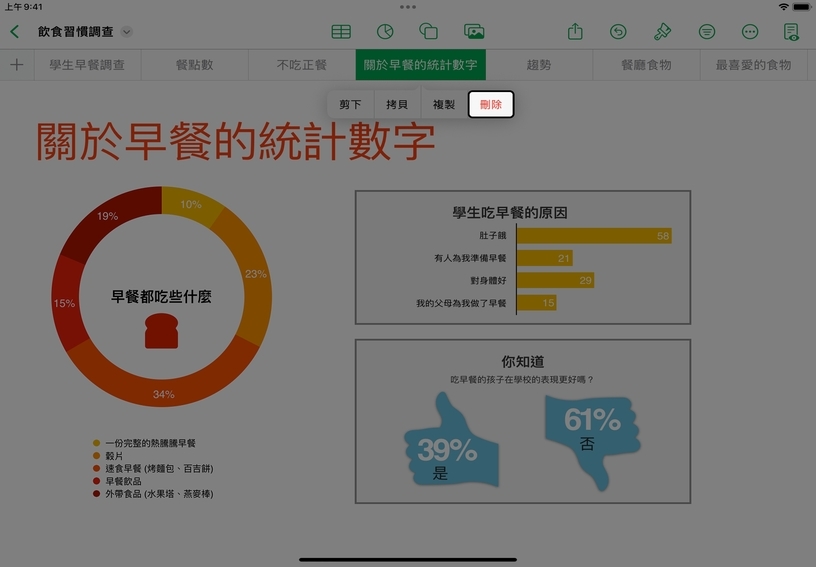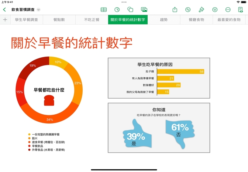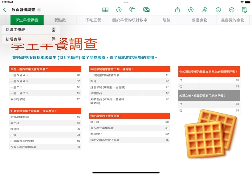 針對所教授的不同班級整理資訊。針對各個等級或學科製作新的工作表,然後加入表格、圖表和其他物件,以協助你分類及管理資料、工作和資源。