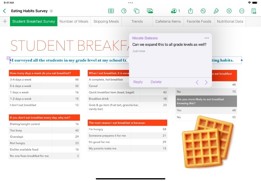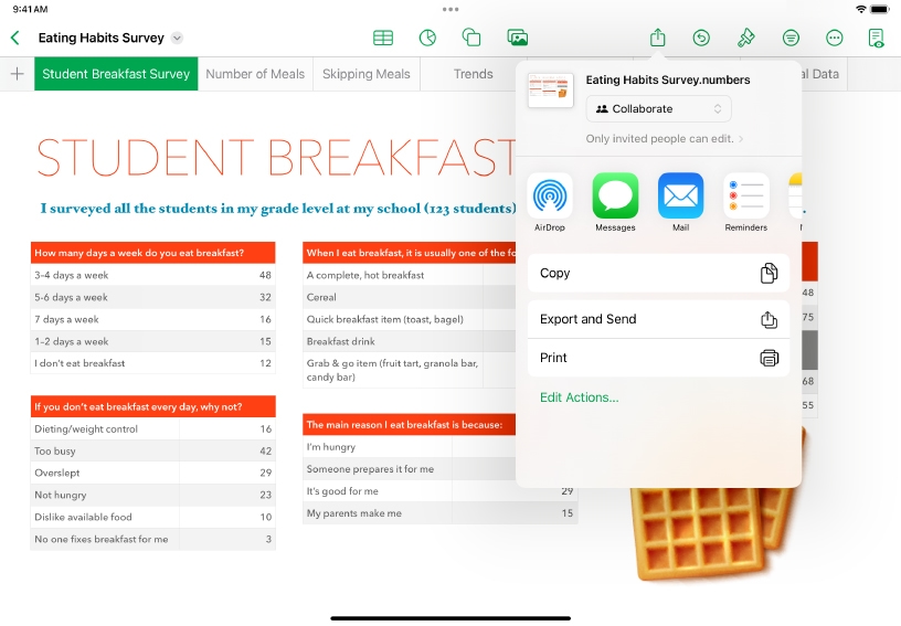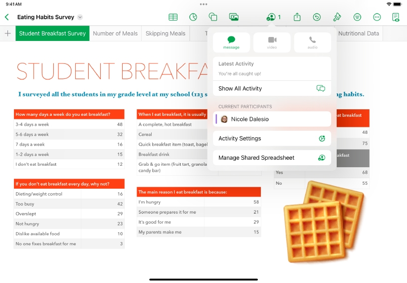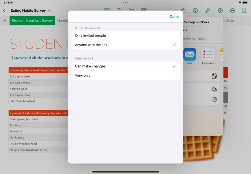 Collaboration features in Numbers let you invite others to edit and contribute to a spreadsheet in real time. You can ask a colleague for feedback on your work, plan a project collaboratively, or keep others informed with a view‑only spreadsheet.