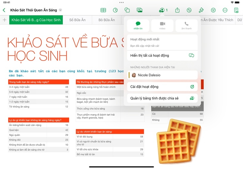 Tính năng Cộng Tác trong Numbers giúp bạn mời những người khác chỉnh sửa và đóng góp vào bảng tính trong thời gian thực. Bạn có thể mời đồng nghiệp chia sẻ ý kiến phản hồi về công việc, cộng tác lập kế hoạch cho dự án hoặc cập nhật thông tin cho người khác bằng bảng tính ở chế độ chỉ xem.