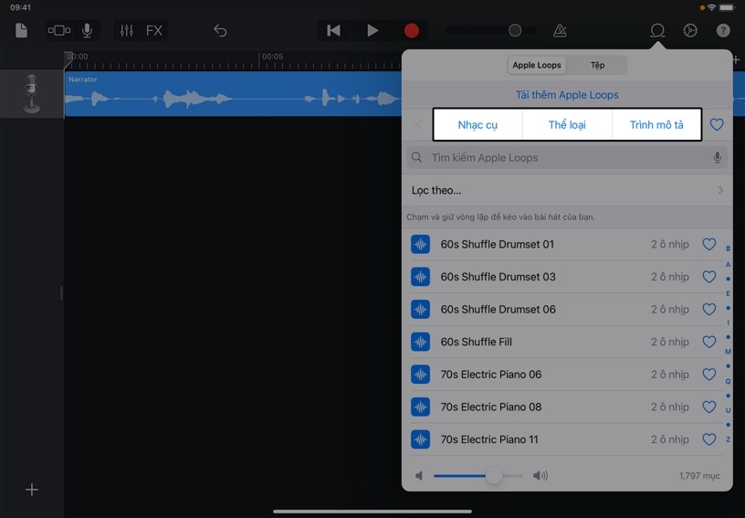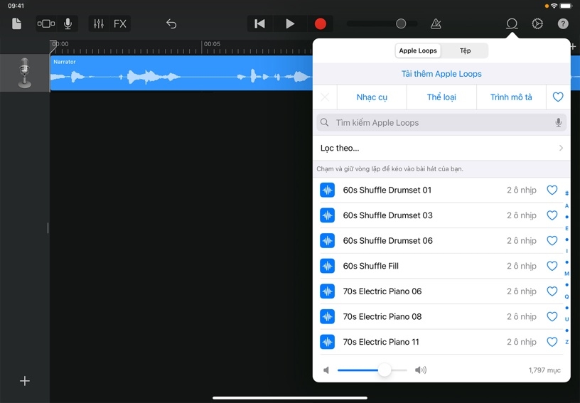Apple Loops là bản ghi ngắn của nhịp trống, dòng đệm, nhạc cụ gõ hoặc hiệu ứng âm thanh. Dùng Apple Loops để nhanh chóng tạo tác phẩm âm nhạc đơn giản cho dự án lớp học – không cần phải biết cách đọc thanh nhạc hoặc chơi nhạc cụ.