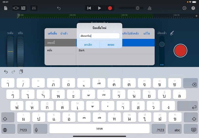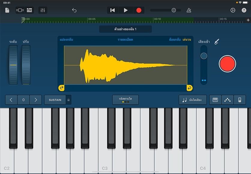 เพิ่มแซมเพิลเสียงในโปรเจ็กต์ของคุณ โดยแตะ "อัดเสียง" แล้วเล่นเสียงที่คุณต้องการเพิ่มไปที่โปรเจ็กต์ เมื่อเสร็จเรียบร้อย ให้แตะ "เล่น"