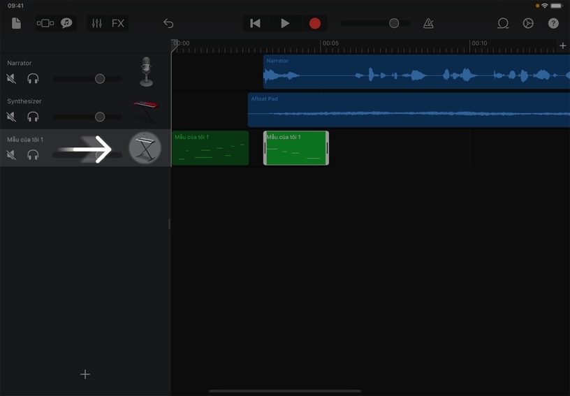 Khi bạn ghi âm đoạn nhạc, giọng hát hay hiệu ứng âm thanh vào GarageBand, một hình biểu diễn bản ghi, được gọi là vùng, sẽ xuất hiện trong một rãnh ở chế độ xem Rãnh. Bạn có thể cắt xén, tách và sắp xếp các vùng để tạo bài hát và dự án âm thanh khác.