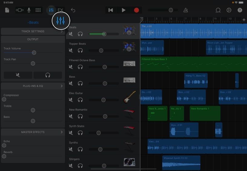 Track controls let you adjust and add effects to recorded tracks so they work together and complement one another. Mixing tracks is the final step before exporting audio projects and sharing them with students, parents, or colleagues.