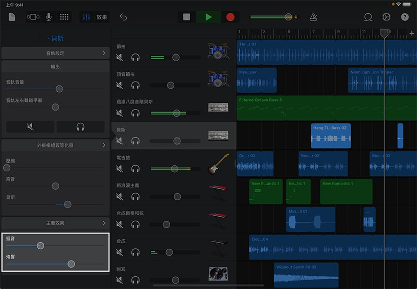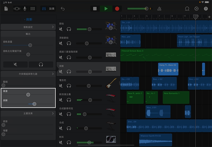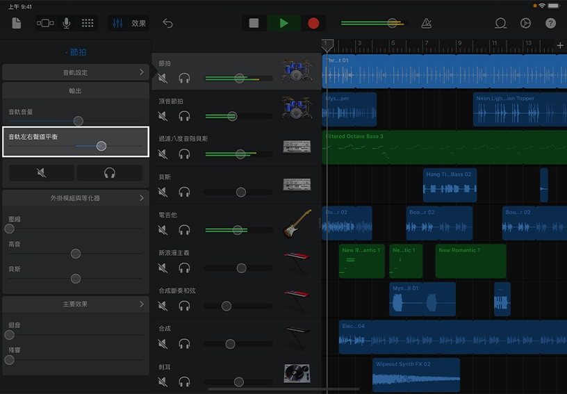 音軌控制項目讓你可以調整錄製的音軌並加入效果,兩者相互搭配、相得益彰。混合音軌是在輸出音訊計畫案,以及向學生、家長或同事分享之前的最終步驟。