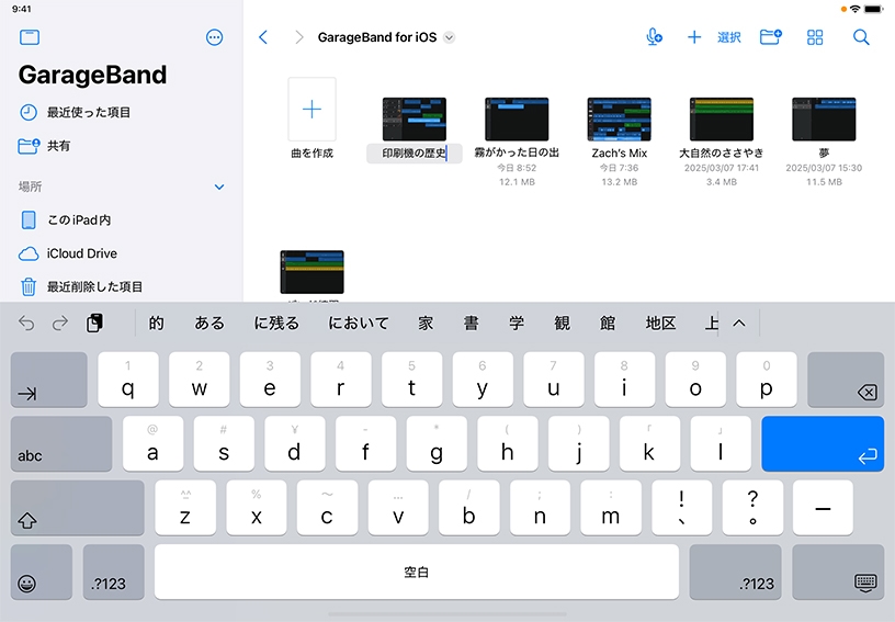 プロジェクトに名前を付けてみましょう。プロジェクトのサムネール画像を長押しして「名称変更」が表示されたらタップし、名前を入力してReturnキーを押します。