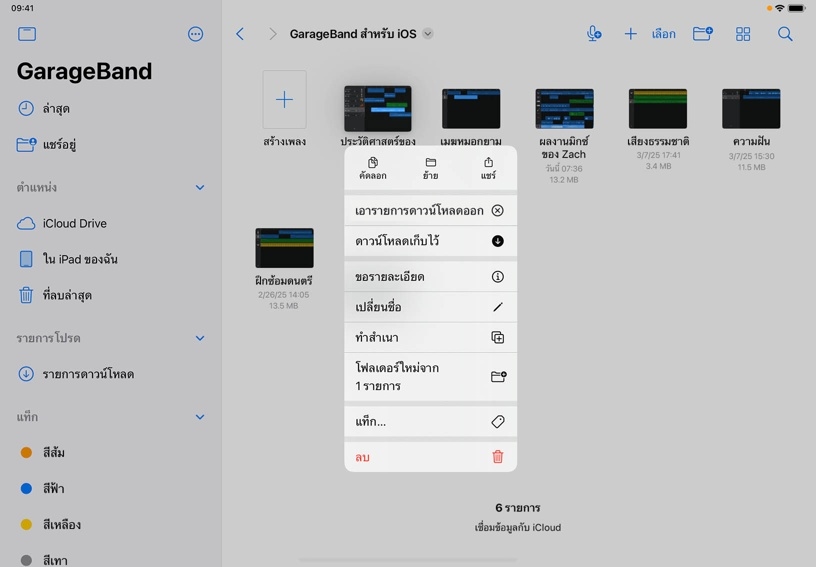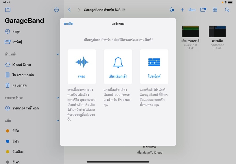แชร์โปรเจ็กต์ของคุณ โดยแตะรูปย่อของโปรเจ็กต์ค้างไว้ และแตะ "แชร์"