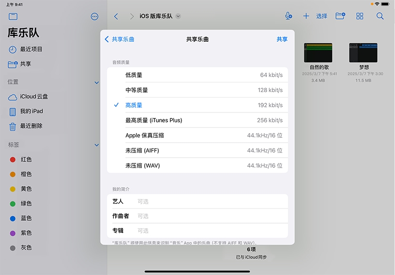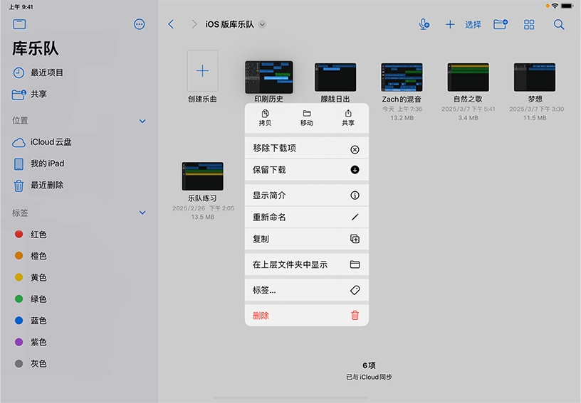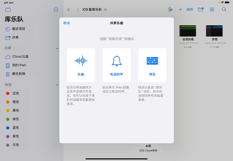 将你的作品以项目或乐曲形式共享给其他人。共享你的作品来进行同学互评,或者共享为视频配乐或课堂项目的背景音乐。