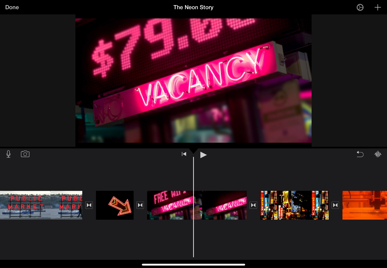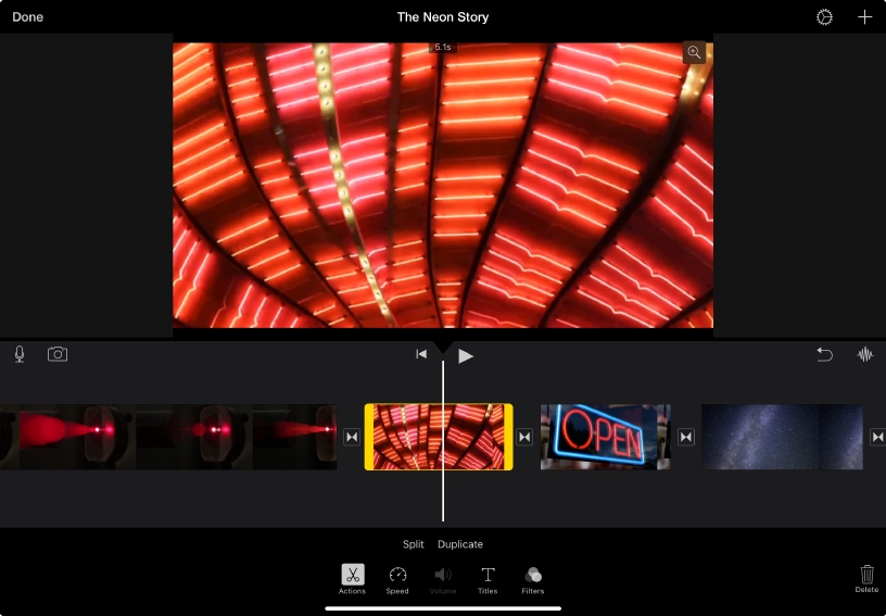 With a few simple gestures, you can rearrange and trim the clips in your movie any way you like. Adjusting your shots to the ideal length and order helps you tell an interesting, well‑paced story from beginning to end.