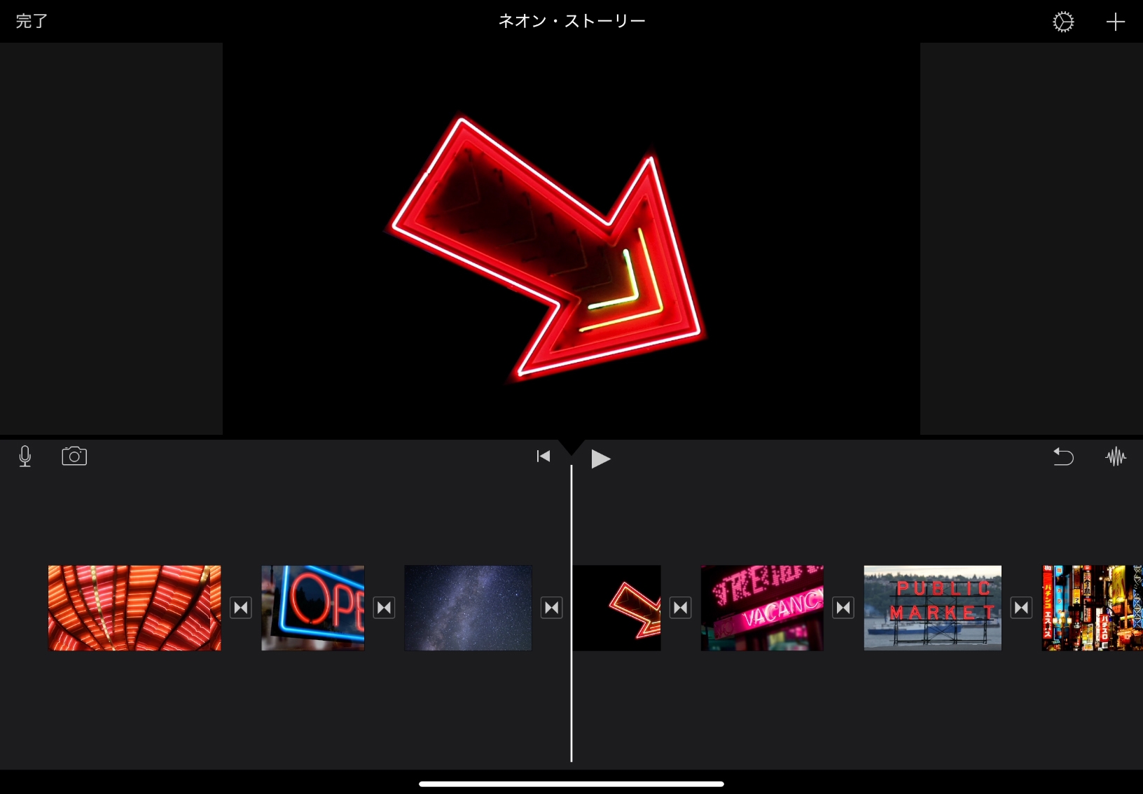 ズームインしてみましょう。2本の指を使ってタイムラインに表示されているビデオクリップを拡大すると、より細かくトリミングすることができます。クリップを拡大しても、表示時間の長さ自体は変わりません。