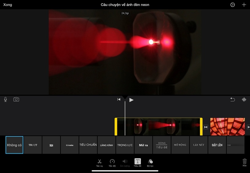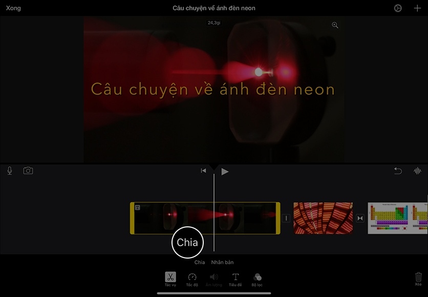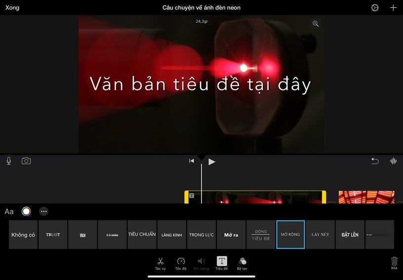 Thêm tiêu đề vào clip. Chọn clip trong dòng thời gian, sau đó chạm vào Tiêu Đề