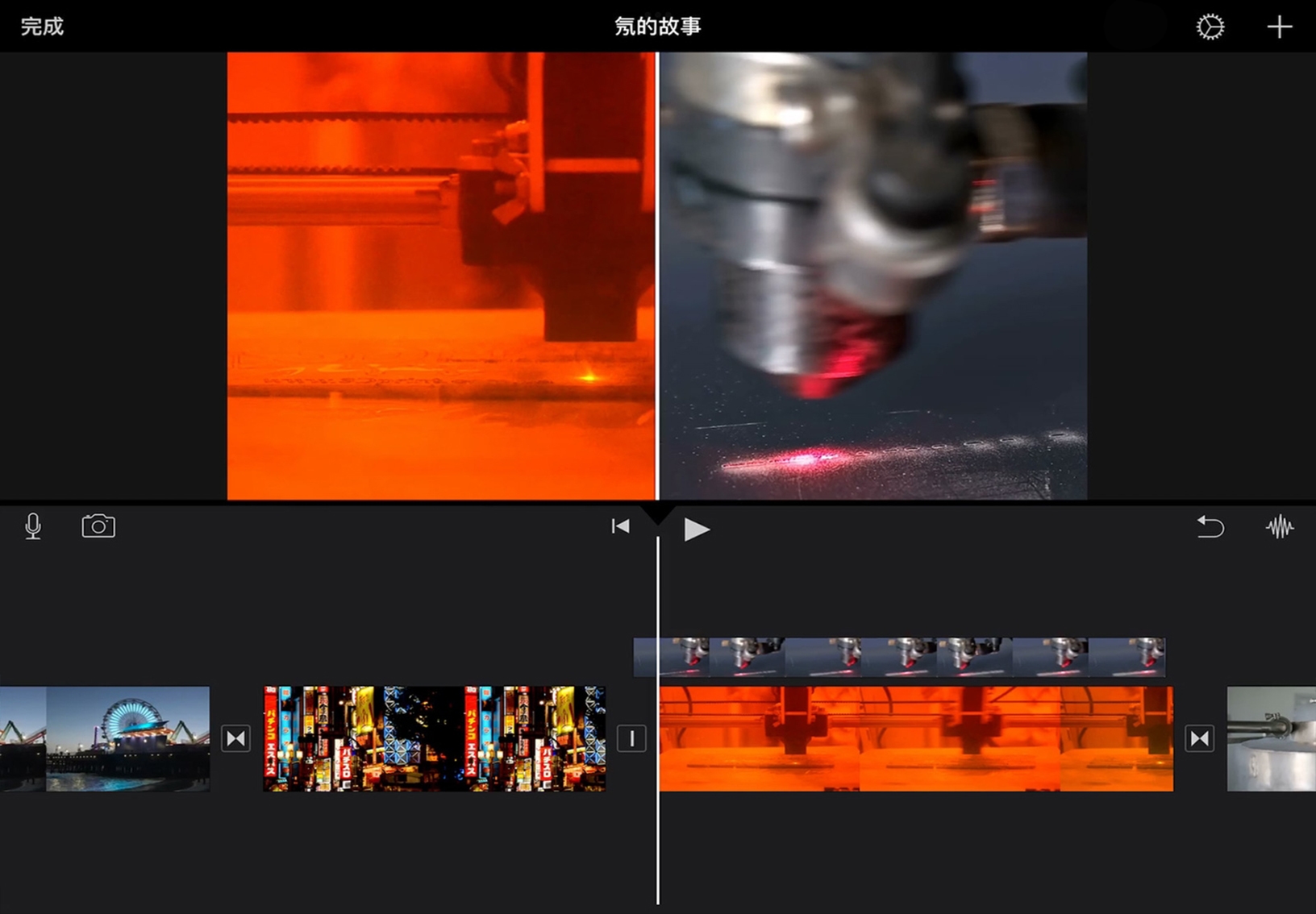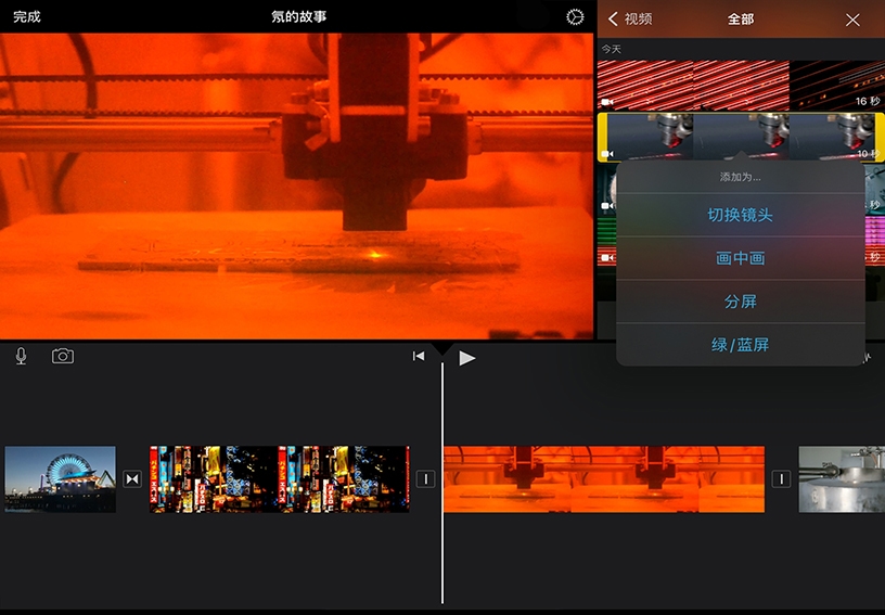 轻点“分屏”。这个片段将显示在播放起点的片段上方。