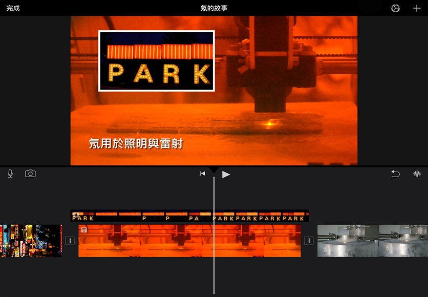播放分割螢幕剪輯片段。將播放磁頭置於分割螢幕剪輯片段前,然後點一下「播放」。
