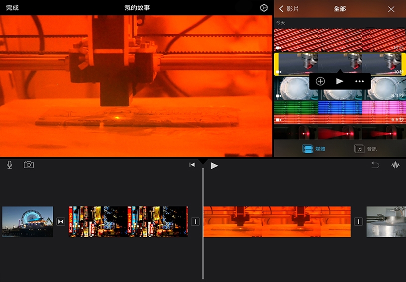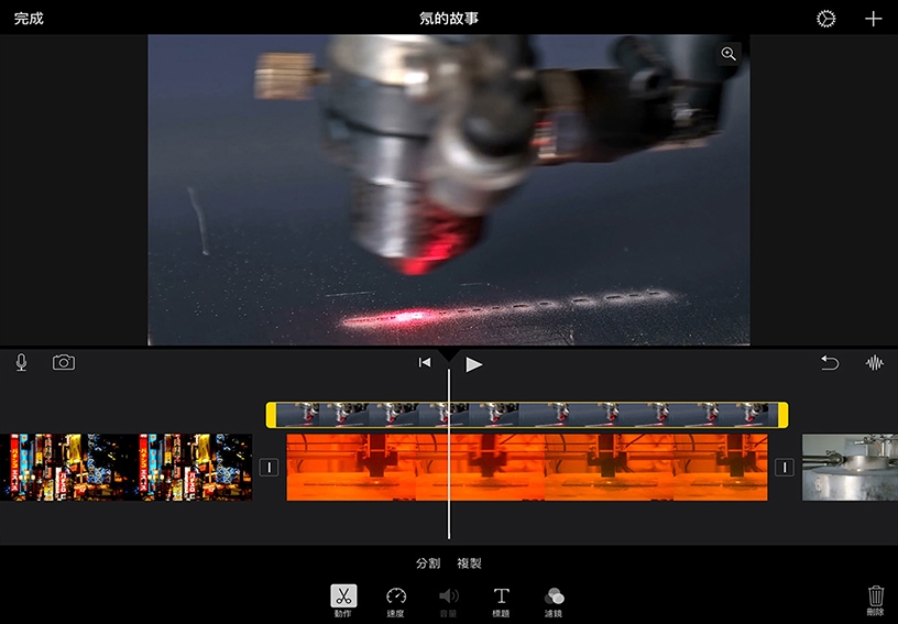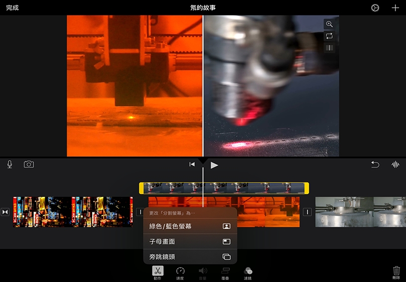 點一下「分割螢幕」。該剪輯片段將出現在播放磁頭處的剪輯片段上方。