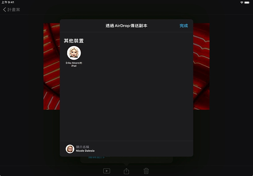 、點一下 AirDrop,然後選擇想傳送到哪個裝置或人員。