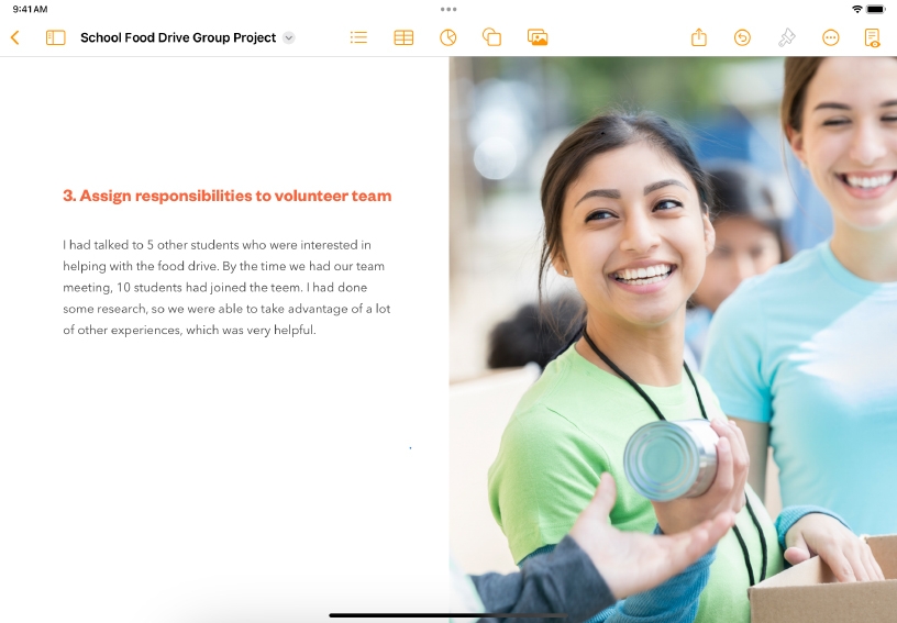 Open an existing writing assignment in Pages, or add a paragraph of text to a new document.