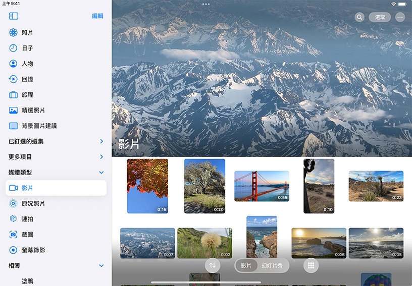 ,然後點一下「媒體類型」下的「影片」,以顯示資料庫內的所有影片。點一下影片來打開。