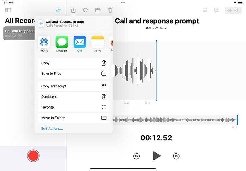 . You can send a recording directly to apps such as iMovie or Notes, or save it to Files for use in other apps.