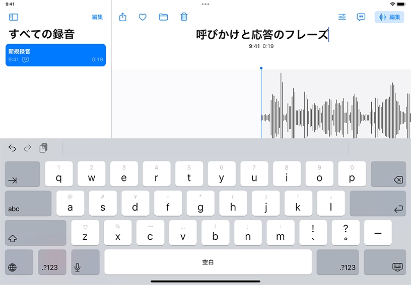 録音した音声に名前をつけましょう。録音したボイスメモには仮の名前がついているので、タップして新しい名前を入力してください。