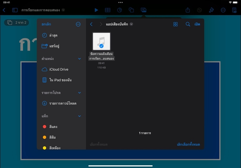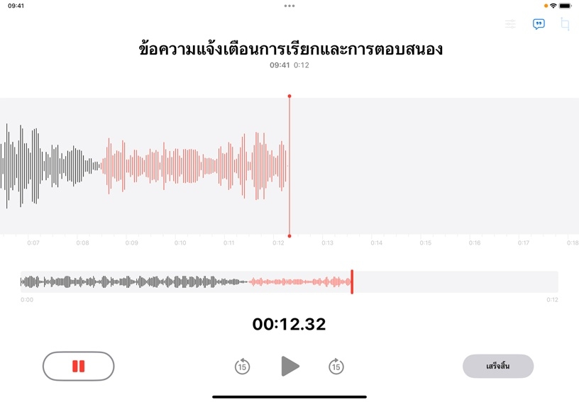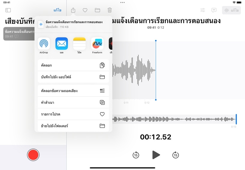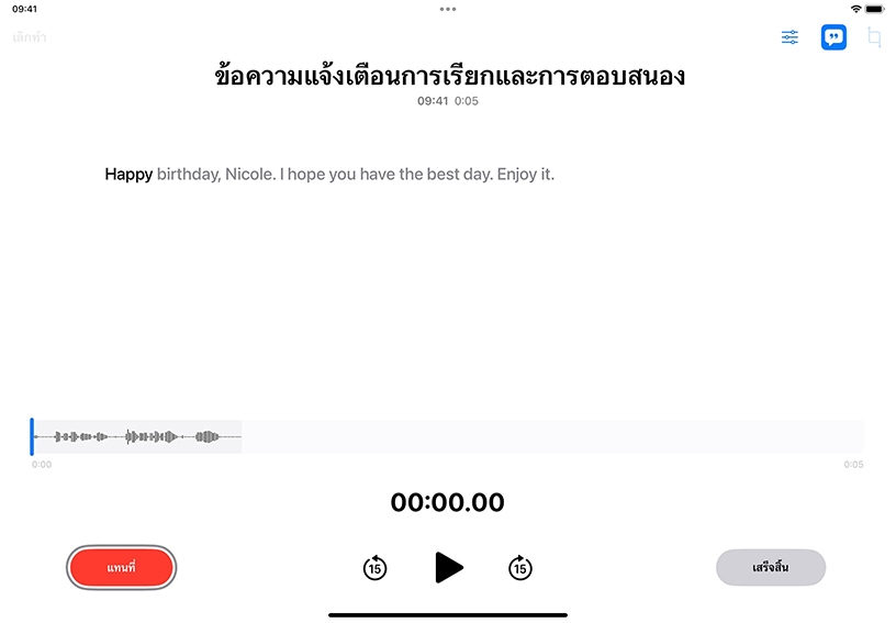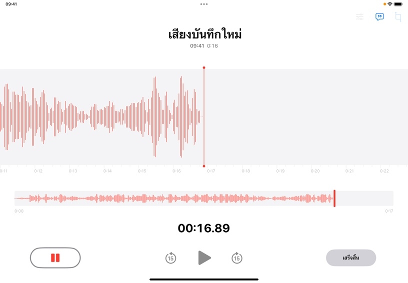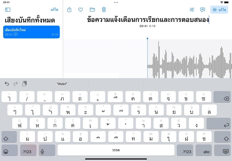 เปลี่ยน iPad ของคุณเป็นอุปกรณ์บันทึกเสียงแบบพกพาด้วยแอปเสียงบันทึก บันทึกโน้ตเสียงสั้นๆ หรือบันทึกเสียงผู้คน สถานที่ และสิ่งต่างๆ รอบตัวคุณ สร้างคอลเลกชั่นเสียงบันทึกที่คุณสามารถนำไปใส่ไว้ในหนังสือ งานนำเสนอ หรือวิดีโอเพื่อสนับสนุนประสบการณ์การเรียนรู้